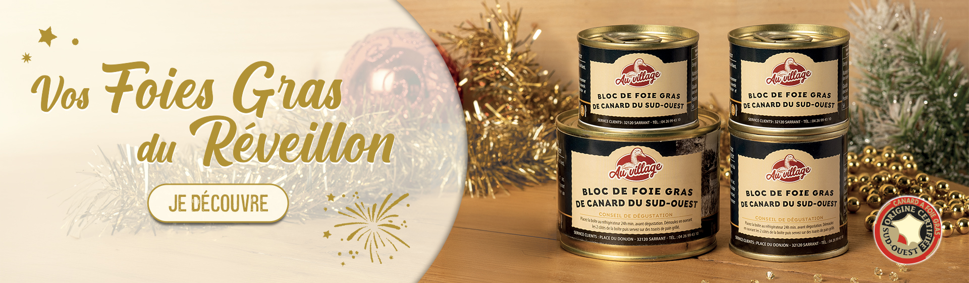 Fidèles aux recettes du Gers et du Sud-Ouest héritées de nos anciens, nous avons à cœur de privilégier le savoir-faire d’entreprises locales, c’est-à-dire d’artisans et de cuisiniers au talent unique et reconnu. Vous serez ainsi étonné par la diversité des produits de notre terroir : cuisine du canard bien sûr, mais aussi terrines et pâtés, plats cuisinés à base de bœuf, de porc et de volaille, légumes, accompagnements ou encore desserts régionaux. Des milliers de gourmets de toute la France nous font ainsi confiance, en particulier au moment des fêtes, pour acheter leur foie gras de canard. Qu’il s’agisse de Blocs de foie gras, de foie gras entier ou encore d’entrées au foie gras, toutes nos spécialités sont le fruit d’une sélection exigeante qui font d’Au Village votre épicerie fine par excellence. Autre atout : les spécialités Au Village sont aussi les plus simples à préparer. Déjà prêtes, il suffit souvent de les réchauffer pour s’en régaler. Repas de fête ou plat complet à toujours avoir en réserve, vous avez dans tous les cas la garantie d’être satisfait…
